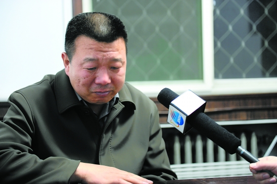 4月20日,被撞学生李小林(化名)的父亲李建玺回想起两年前儿子苏醒后的情景难抑悲伤之情。 新华社记者 王民 摄