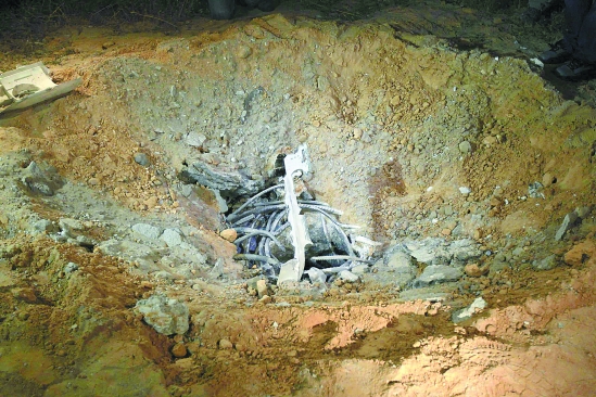 这是4月23日在利比亚首都的黎波里拍摄的弹坑。 新华社发