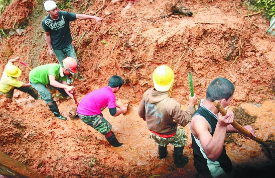 菲律宾官员22日晚说,当天凌晨在孔波斯特拉山谷省发生的山体滑坡灾害造成的死亡人数已经上升到27人。图为救援人员在山体滑坡现场工作。 新华社发