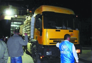 | 4月21日,一批由卡塔尔提供的人道主义救援物资从利比亚东部城市班加西装船运往西部城市米苏拉塔。 新华社记者 李远 摄 |