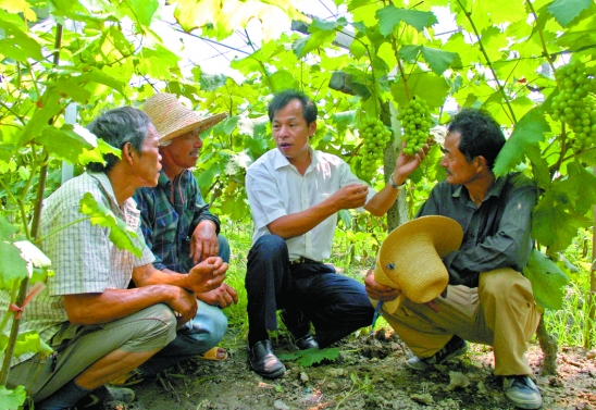 朱屹峰葡萄种植服务室上田间地头指导种植技术