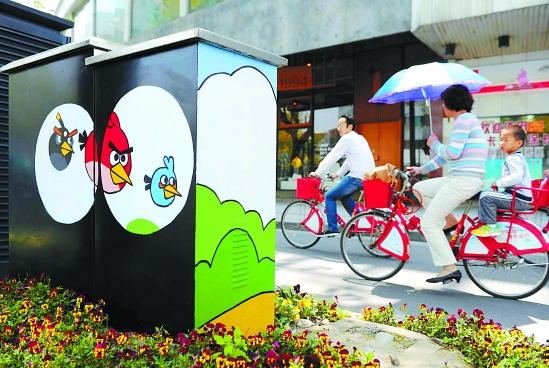 杭城街头处处可见动漫元素,图为中北创意街区上的几只“愤怒的小鸟”。 本报记者 董旭明 摄