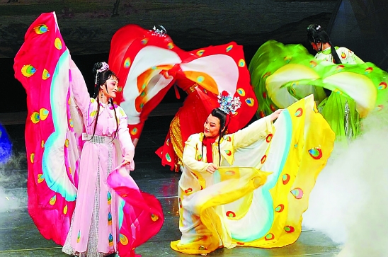 4月23日晚,浙江越剧明星版《梁山伯与祝英台》在台北市国父纪念馆剧场进行了台湾巡演的首场演出,受到热烈追捧。绍兴日报记者 袁云 摄
