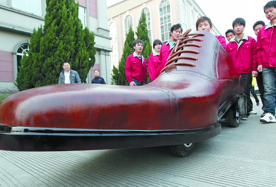 也有一些中小企业在加快创新,图为温州一家企业设计的巨型电动皮鞋。东方IC供图