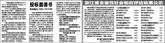 根据民政部《关于推进民间组织评估工作的指导意见》、浙江省民政厅《全省性社会组织评估实施办法》、《关于开展全省性社会团体评估工作的通知》、《关于开展省本级民办非企业单位评估工作的通知》、《关于开展基金会评估工作的通知》的有关精神,2011年1月份以来,浙江省社会组织评估委员会委托浙江省至诚会计师事务所,对自愿参加、符合条件的24家社会组织(其中社团20家、民办非企业单位2家、基金会2家)进行评估。经过评估机构评估、省社会组织促进会培训和评估专业委员会审核、评估委员会审定,评出5A级社会组织5个,4A级社会组织13个,3A级社会组织6个。现将评估结论在《浙江日报》上予以公示(名单附后),公示日期为2011年4月26日至5月6日。欢迎社会各界监督。本公示同时登载于浙江省民政网http://www.zjmz.gov.cn,浙江省民间组织信息网http:/mjzz.zjmz.gov.cn。