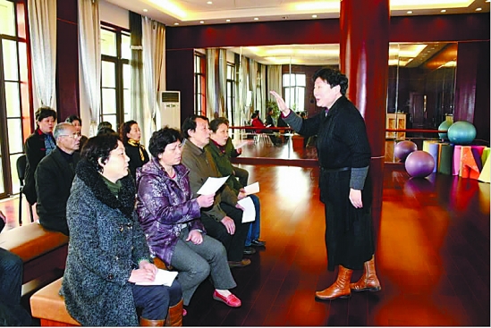 老年业主在绿城颐乐学堂快乐地上声乐课。瞧,他们多认真。律成 摄
