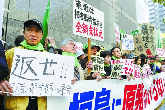 4月26日,农民在日本东京的东京电力公司总部示威。 新华社发