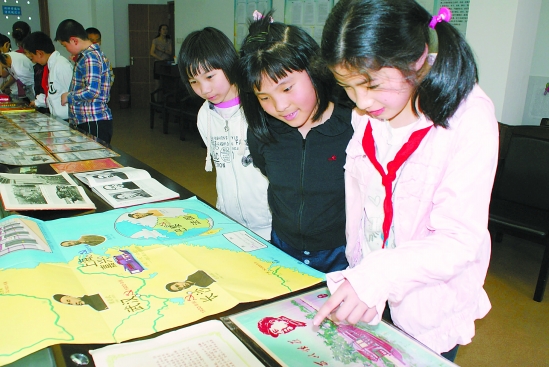4月26日,杭州新华小学举行建党90周年藏品资料展,让学生感受时代变迁。 记者 叶玉跃 摄