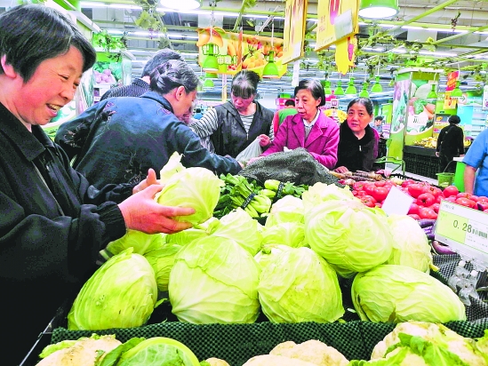 | 4月27日,杭州市民在华润万家西湖大道店选购0.28元/斤的包心菜。华润万家在杭城的每个门店都专门为包心菜辟出了1.5平方米的销售区域,每日总采购量基本保持在15吨以上。包心菜低价促销为期一周,后期超市还将选择其他有滞销情况的蔬菜品种。 龙巍 摄 |