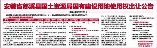 安徽省郎溪县国土资源局国有建设用地使用权出让公告