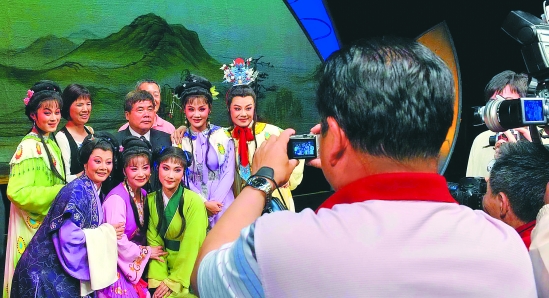 4月26日晚,浙江明星版越剧《梁山伯与祝英台》在台湾举行第二场巡演,新竹市千余名观众观看了演出,并纷纷与演员们合影。 绍兴日报记者 袁云 摄