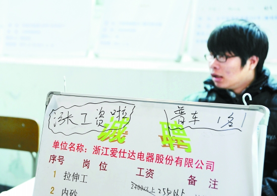 温岭市劳动力市场,企业纷纷以提高工资,提供住宿等条件吸引工人。吴鹏飞 摄