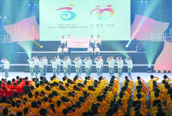 4月29日,4000名志愿者代表在杭州誓师。今年10月,浙江省将承办第八届全国残疾人运动会,共有47916名社会各界人士报名参加赛会志愿服务,12000名志愿者已于日前全部选拔产生。