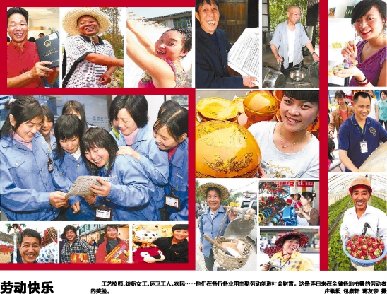 工艺技师、纺织女工、环卫工人、农民……他们在各行各业用辛勤劳动创造社会财富。这是连日来在全省各地拍摄的劳动者的笑脸。 庄颖昶 包康轩 蒋友亲 摄