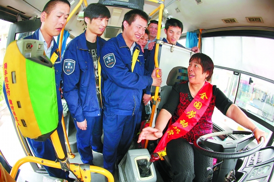 5月1日,宁波公交总公司全国劳模、原公交司机马玉清走进宁波4路车队“青年文明号”,向年轻司机们传授经验。胡建华 毛敏尔 朱惜斐 摄