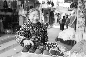 过去浦江城里像我这样做布鞋卖的摊子有五六家,后来老人“过去”了,年轻人转行做了别的生意。所以,现在整个城里就剩下了我一家。
