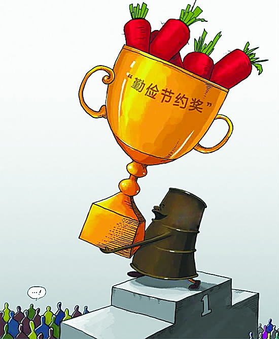 你公司在2010年管理费用约578亿元、分公司经理一次可购买高档酒约159万元的同时,仍能坚持“大葱的葱白和葱叶会分开使用,萝卜也会分部位进行红烧或凉拌”的勤俭节约精神。特颁此奖杯,以资鼓励。