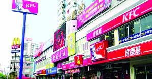 | 虹桥镇时代广场上,肯德基和麦当劳比邻而居。吴泽 摄 |