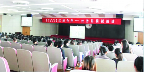 | 4月17日上午,浙大城市学院6名在校大学生在拱墅区人民政府三号楼第二会议室内进行仿真模式的公务员模拟面试。同时,在另一个大型报告厅内,有200余名同学以及教师通过视频实时转播,观摩了整个模拟面试的过程。这是拱墅区人民政府与浙江大学城市学院“区校合作”战略的一项重要活动——联合举办“区校合作——公务员模拟面试”教学实训活动。记者也有机会现场聆听和观看了这堂生动的案例教学课,了解了公务员面试的整个过程。全真场景,案例同步转播,专家现场评点,这堂课确实是一种新鲜而又实用的学习体验。 |