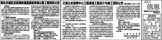 3.报名时间、地点及携带资料:请申请人于2011年5月9日16时30分前,持单位介绍信,营业执照副本原件及复印件,资质证书副本原件及复印件,建造师注册证书原件及复印件,建造师社保交纳证明原件及复印件,企业安全生产许可证及三类人员证书原件及复印件,类似工程业绩合同原件及复印件到兰溪市公共资源交易中心(兰溪市丹溪大道160号七楼)报名。
