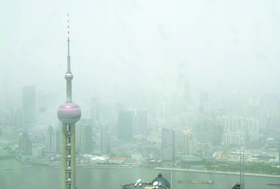 上海黄浦江两岸的建筑被沙尘笼罩。新华社发