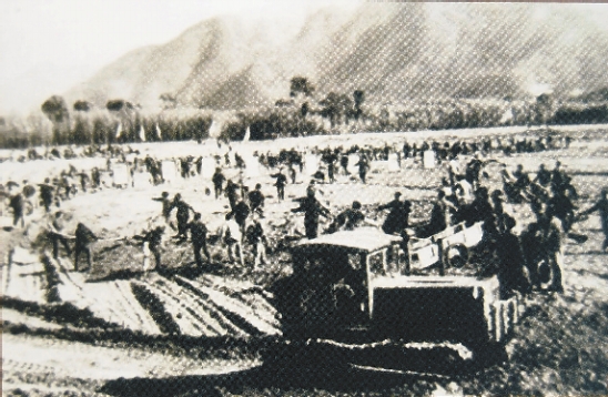 临海县沿溪乡沿岸村改滩造田的情景