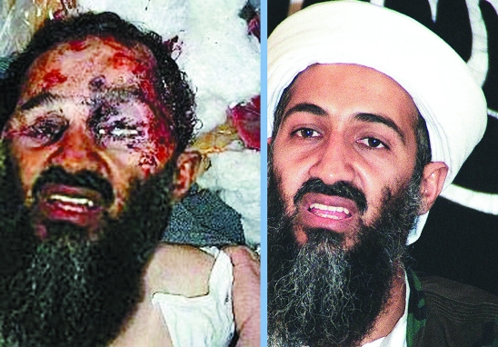 | 这张对比图片左半部分显示的是5月2日在网络上流传的一张照片,巴基斯坦电视机构称该照片显示的是本·拉丹被击毙后的情形。而图片的右半部分为一张未注明日期的本·拉丹资料照片。这一对比显示出,左图的脸下部和胡须很可能是通过复制粘贴把右图的一部分和一具并非本·拉丹的尸体的照片合成而得到的。新华社发 |