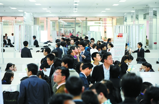 5月4日,杭州人才市场从武林广场搬迁至和平广场,并在新址举办首场人才招聘会。新市场面积扩大一倍,可同时容纳200多家招聘单位和更多的求职者入场交流。本报记者 李震宇 摄