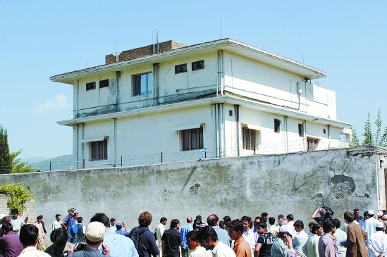 在巴基斯坦阿伯塔巴德,人们围观本·拉丹藏身的住宅。 新华社发