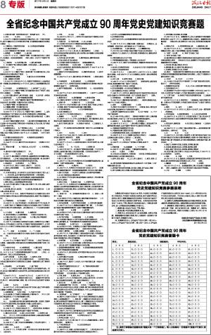 全省纪念中国共产党成立90周年党史党建知识竞赛题