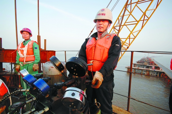 ③五一节期间,嘉绍跨江大桥北副航道桥工地上,900多名建设者坚守岗位。