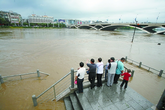5月8日,市民在漓江边看江水上涨。 新华社发