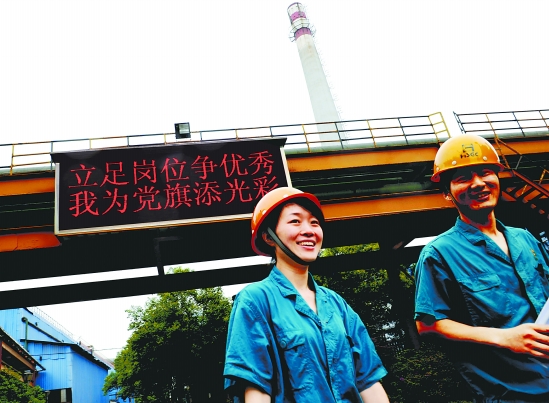 杭州钢铁集团党员积极参与“我为党旗添光彩”活动。本版摄影:记者 梁臻