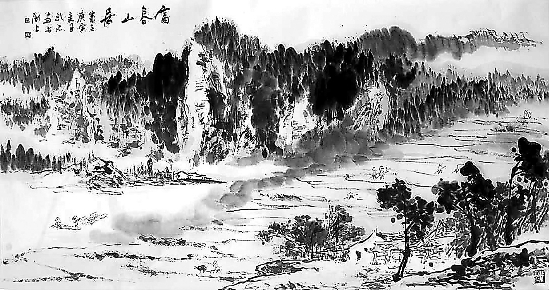 | 富春山居(纸本水墨) 吴立民 作 作为一种被人称颂不已的人文意象,黄公望的《富春山居图》自问世以来,由于它的经典和传奇,某种程度上已然脱离了自我内容和形式的本身,成为人们寄情山水、躬耕乡野的图像符号。就如陶渊明的《桃花源记》,这个通篇仅用300余个文字描绘的理想之国,在历代画家的笔下,早已被渲染得淋漓尽致。吴立民先生的《富春山居》图显然更倾心于此,画中有山有水,有舟有舍,还有“良田美池,往来种作”。我以为这是画家根据自己的心迹和理解,截取了富春山居中最契合现代人心灵归宿的一角,加以有意味地呈现。画面层次丰富,斜角构图寓静于动,山石树木用浓淡墨点染之外辅之以石青和赭石晕染,呈现出秀润、苍翠和氤氲的效果。应霁民 |
