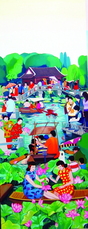 | 中国美院学生赵佳妮创作的地铁壁画《曲院风荷》 |
