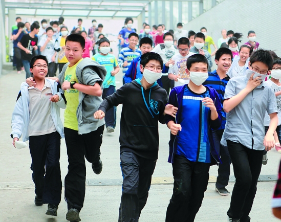 昨日,温岭市第四中学学生参加逃生演练。周学军 张鲜红 摄