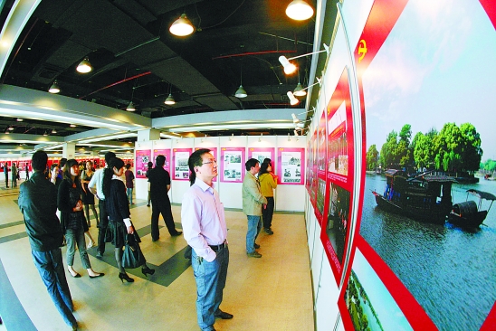 5月12日上午,由浙江日报报业集团与人民画报社联合主办、南湖区委宣传部承办的《走向辉煌的伟大历程——纪念中国共产党成立90周年》大型图片展在嘉兴群艺馆开幕。