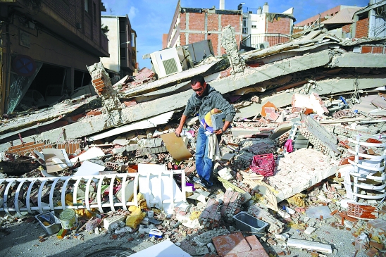 5月12日,在西班牙东南部古镇洛尔卡,一名男子在地震造成的房屋废墟里捡拾有用的物品。 新华社发