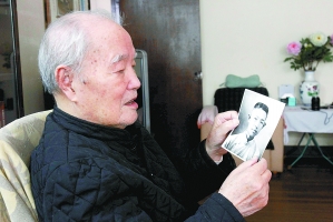 | 5月8日,在上海康平路的家中,89岁的王杰老人手持父亲王尽美的照片默默相对。新华社记者 刘颖 摄 |