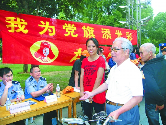 金华“城市啄木鸟”党员志愿者开展广场便民服务。