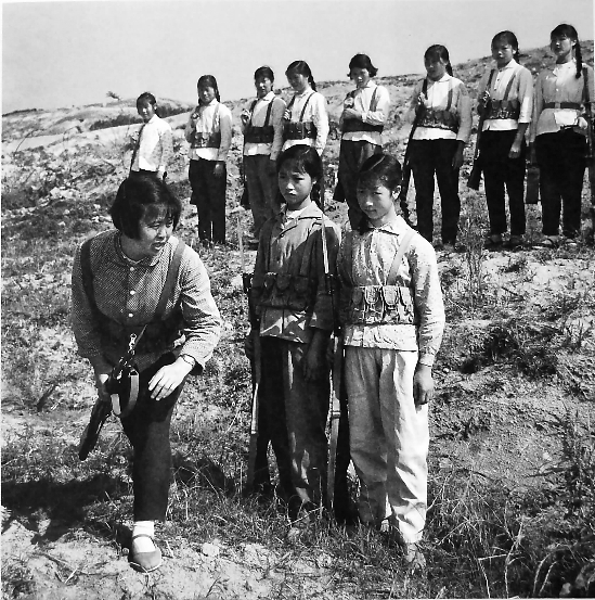 洞头女子民兵连连长汪月霞(前排左)率领民兵苦练射击。
