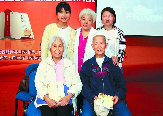 讲红色故事的老党员与大学生代表合影(资料照片)。 新华社发