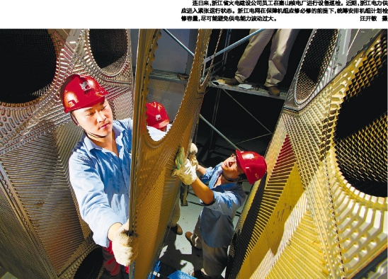连日来,浙江省火电建设公司员工在秦山核电厂进行设备巡检。近期,浙江电力供应进入紧张运行状态。浙江电网在保障机组应修必修的前提下,统筹安排机组计划检修容量,尽可能避免供电能力波动过大。 汪开敏 摄