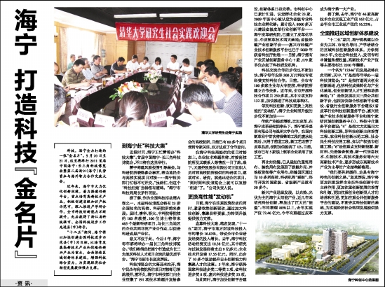 科技,海宁全力打造的一张“金名片”。5月20日至21日,这里将举行2011首届中国海宁·长三角科技博览会暨第二届浙江(海宁)民营资本与海外智力合作交流大会。