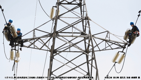5月18日,萧山供电局送电工区检修人员提前对110千伏党山输电线路进行检修和维护,做好迎峰度夏准备。本报记者 吴元峰 通讯员 张俊 姚靖霖 摄