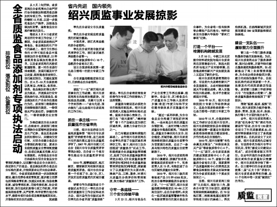 “通过一系列举措,为全市食品安全构建了两张防控网络。一是本地自生性的质量安全预防网,二是针对输入性的质量安全隐患拦截网。”冯灿校说,质量安全事关民生安全、社会稳定、区域形象,绍兴市质监局始终把强化质量安全监管作为首要重任来抓,走出了一条具有绍兴特色的质量安全监管新路子。