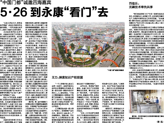 前段时间上海等地成立并运作的知识产权联盟给了王斌坚很大启发,在考察欧美国家的联盟形式后王斌坚有了初步的想法,“门博会上我想与国内外参展商进行讨论和交流,共同推动中国门都产业发展。”