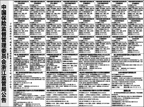 经中国保险监督管理委员会浙江监管局批准,下列机构被撤销,特此公告。