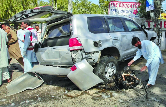警方人员查看一辆受损的美国领事馆汽车。 新华社发
