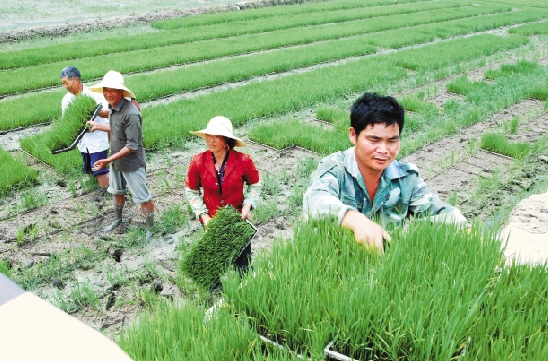 眼下正是单季中晚稻插秧季节。5月21日,全国优秀种粮大户——建德市钦堂乡王建坤夫妇又开始在田间忙开了。今年他家单季中晚稻实种面积2400亩。 宁文武 摄
